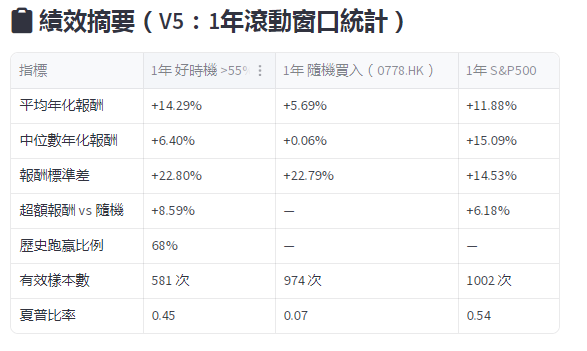 📌 數據說話:好時機 vs 隨機買入的歷史表現差異